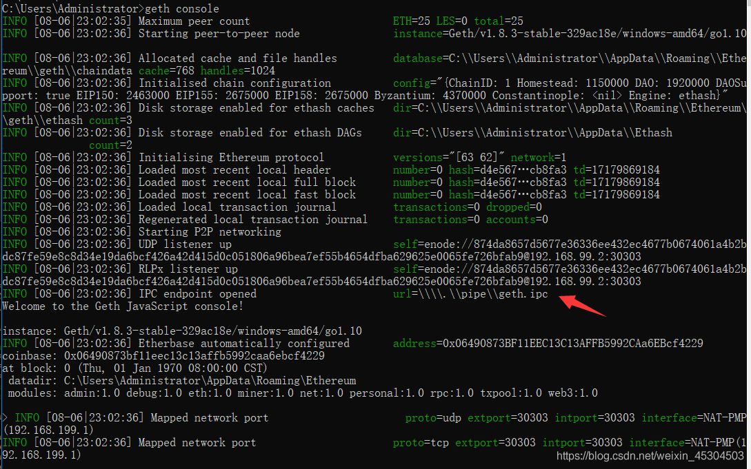 进入控制台:geth console 可以指定--datadir "路径"