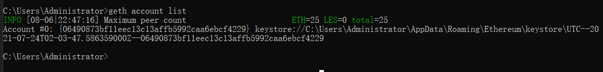 查看账户:geth account list