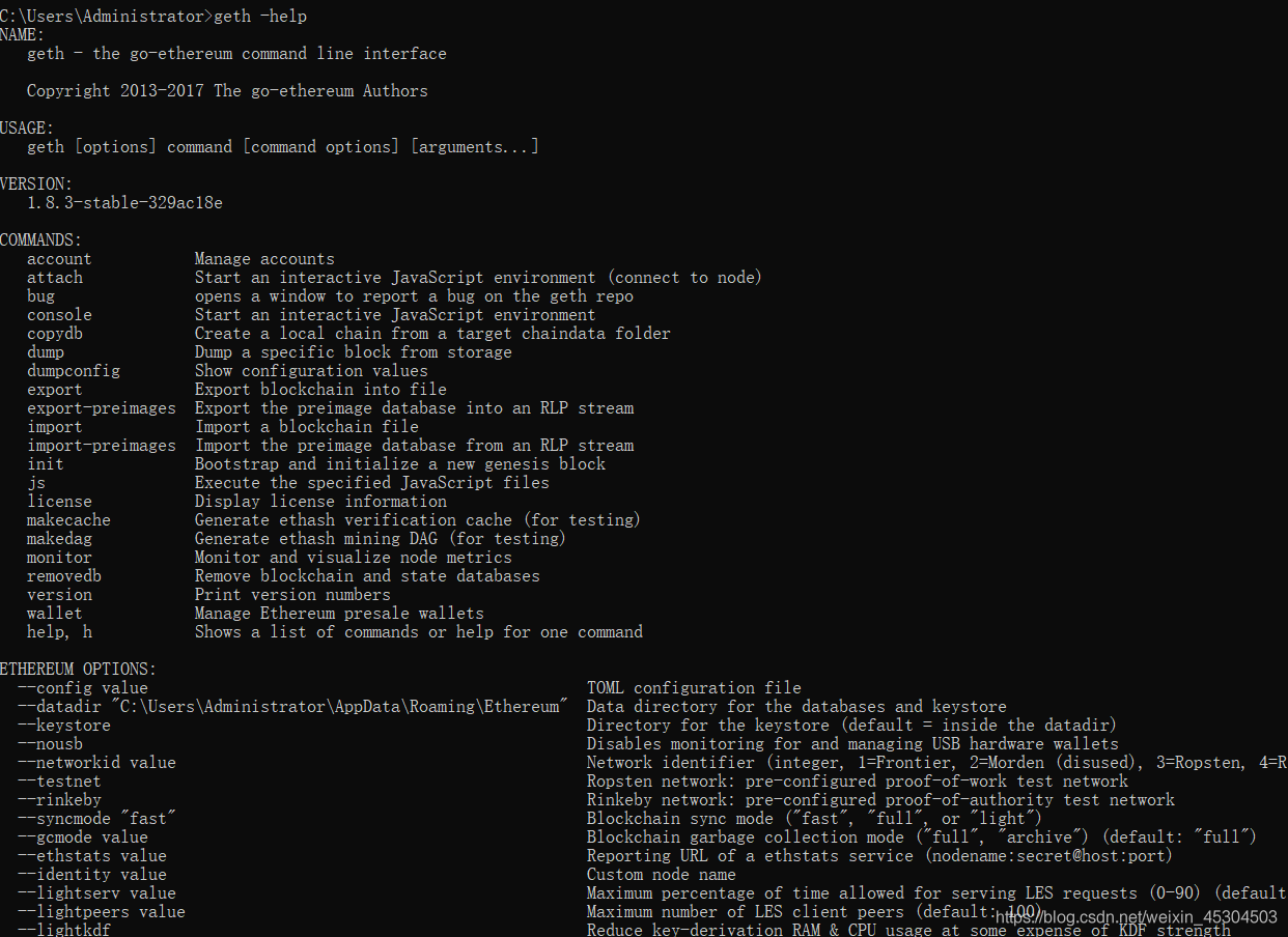 geth -help查看帮助