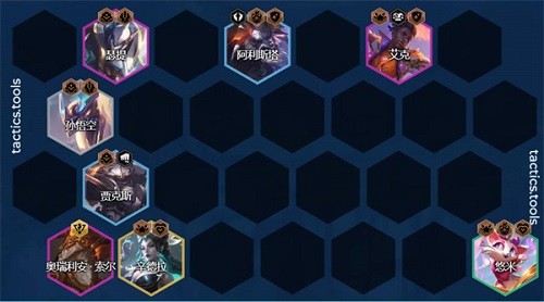 1:这个阵容由腕豪,牛头,艾克,猴子,武器大师,龙王,辛德拉,猫咪组成的;